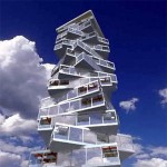مشاهده شد که طرح مسابقه معماری برای سازمان جهانی بهداشت در سال ۱۹۵۹ مفهوم ویژه ای را توصیه کرده بود که در زمستان ۱۹۵۹ در مطالعه برای یک واحد مسکونی ، زمانی که کنزو تانگه دروسی را در مدرسه پلی تکنیک کمبریج در «ماساچوست» ارائه می داد از نو طرح گردید . وی ضمن اعمال برنامه ژنو در بنا به صورتی نو ، ایده بناهای روی هم چیده شده به صورت مدولار را توضیح داد . کنزو تانگه دو ساختمان هلالی شکل را که پیرامون یک محوطه بزرگ ، از یک نقطه به نقطه دیگر آن ، رو به سوی هم داشتند ، بنا کرد . این ساختمانها بناهای مدوله هستند که در کنار خود فضایی آزاد پدید می آورند . این ساختمانها پشت به تپه هایی دارند که در قسمتهایی از زمین چنین به نظر می رسد که نقطه آزاد ساختمانها هستند .