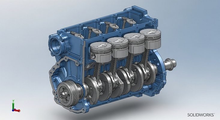 طراحی سیلندر در سالیدورک قابل مشاهده در SOLIDWORKS همراه فایل تک تک قطعات داخل فایل سه بعدی آماده جهت رندرگیری