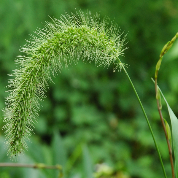 گلومهای آن نوک تیز و مایل به سفید است که سه رگبرگ سبزرنگ،ان را از گلوم سایر گندمیان متمایز میکند،پوشینه های دم روباهی باریک،به درازای گلوم آن است و ریشکهای ان نیز خمیده هستند.در محل غلاف،زبانک بزرگ غشایی دیده میشود.