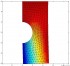 در این پست یک صفحه که دارای یک سوراخ نیم دایره ای هست را از یک طرف ثابت می کنیم و از سمت دیگر تحت کشش قرار می دهیم و در نهایت جابه جایی و تنش را با استفاده از کد نویسی در نرم افزار متلب به روش المان محدود محاسبه می کنیم